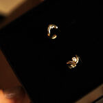 Unikatowe kolczyki, stworzone w jednym egzemplarzu, emanują wyrafinowanym pięknem i doskonałością formy. Ręcznie wyrzeźbione w złocie próby 585, zachwycają starannie zarysowanymi liniami i miękkimi krzywiznami, dzięki którym całe kompozycje nabierają subtelnie dynamicznego charakteru. Ich niewielka średnica (ok. 11 mm) sprawia, że prezentują się jako zmysłowe, intymne dzieła, nie przytłaczając, a zarazem przyciągając wzrok.
