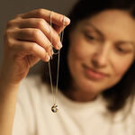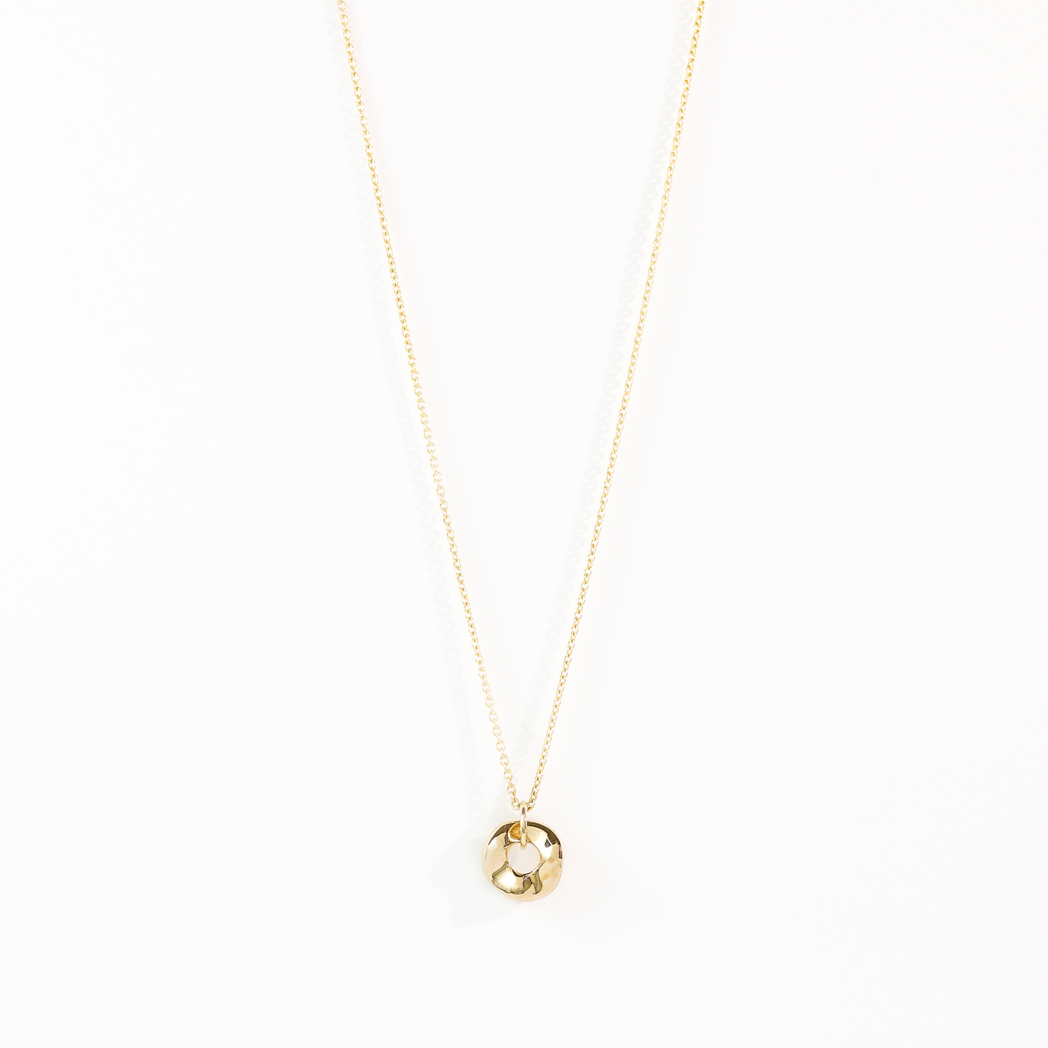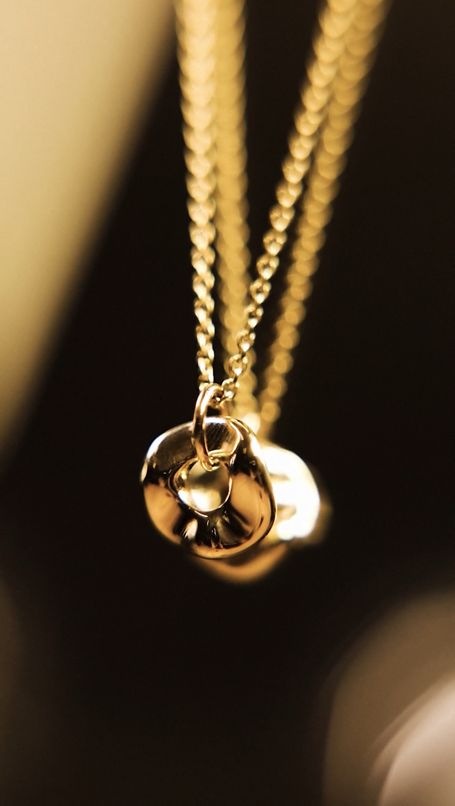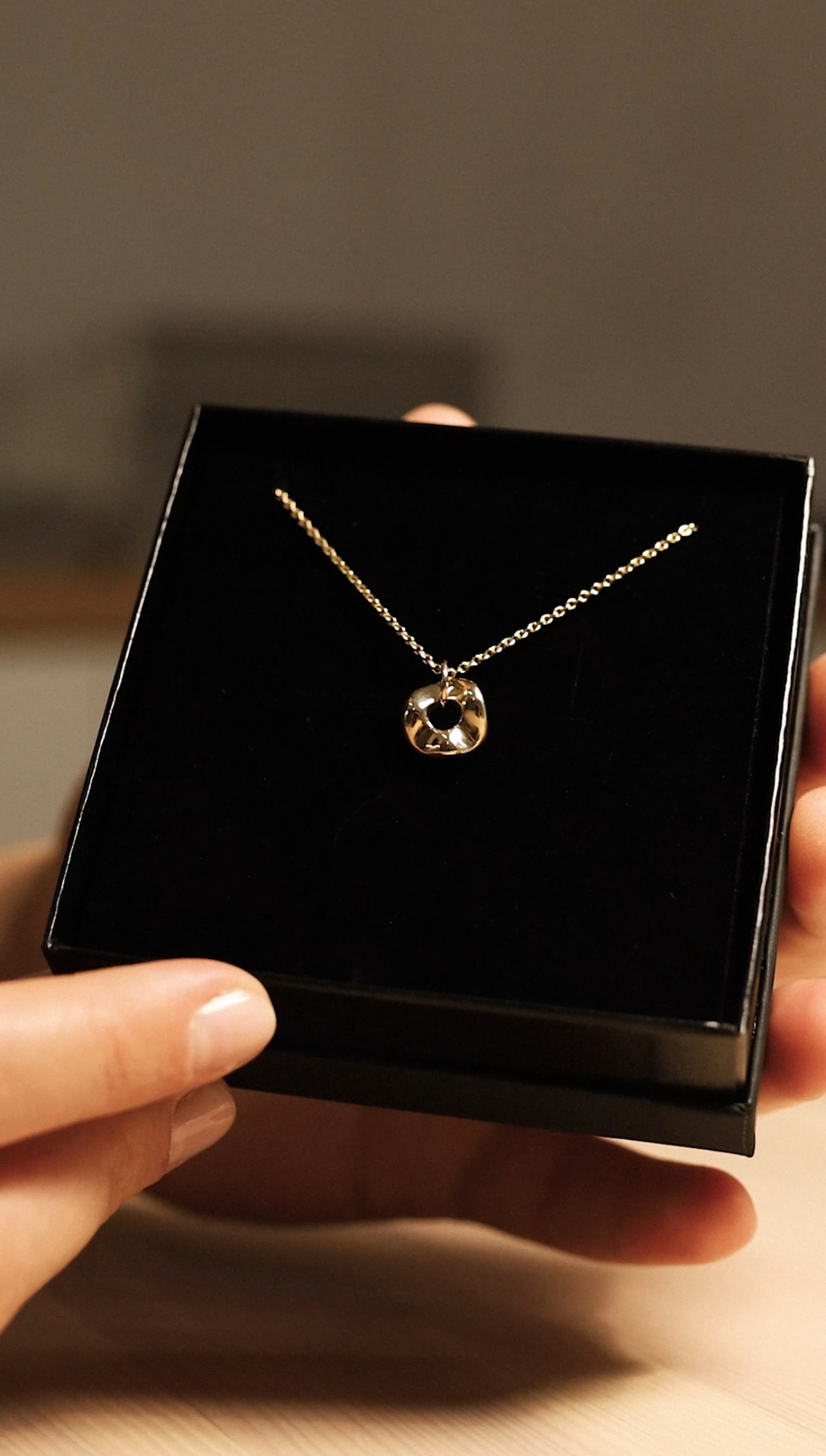 Unikatowy naszyjnik, wyrzeźbiony ręcznie w jednym egzemplarzu, łączy precyzję wykonania z subtelną elegancją. Zawieszka o średnicy 10 mm, wykonana z litego złota próby 585, ma delikatną, organiczną formę, której kształt wydaje się płynnie przechodzić w przestrzeń, tworząc efekt lekkości i harmonii. Pełna konstrukcja zapewnia trwałość, a jednocześnie podkreśla szlachetność materiału.