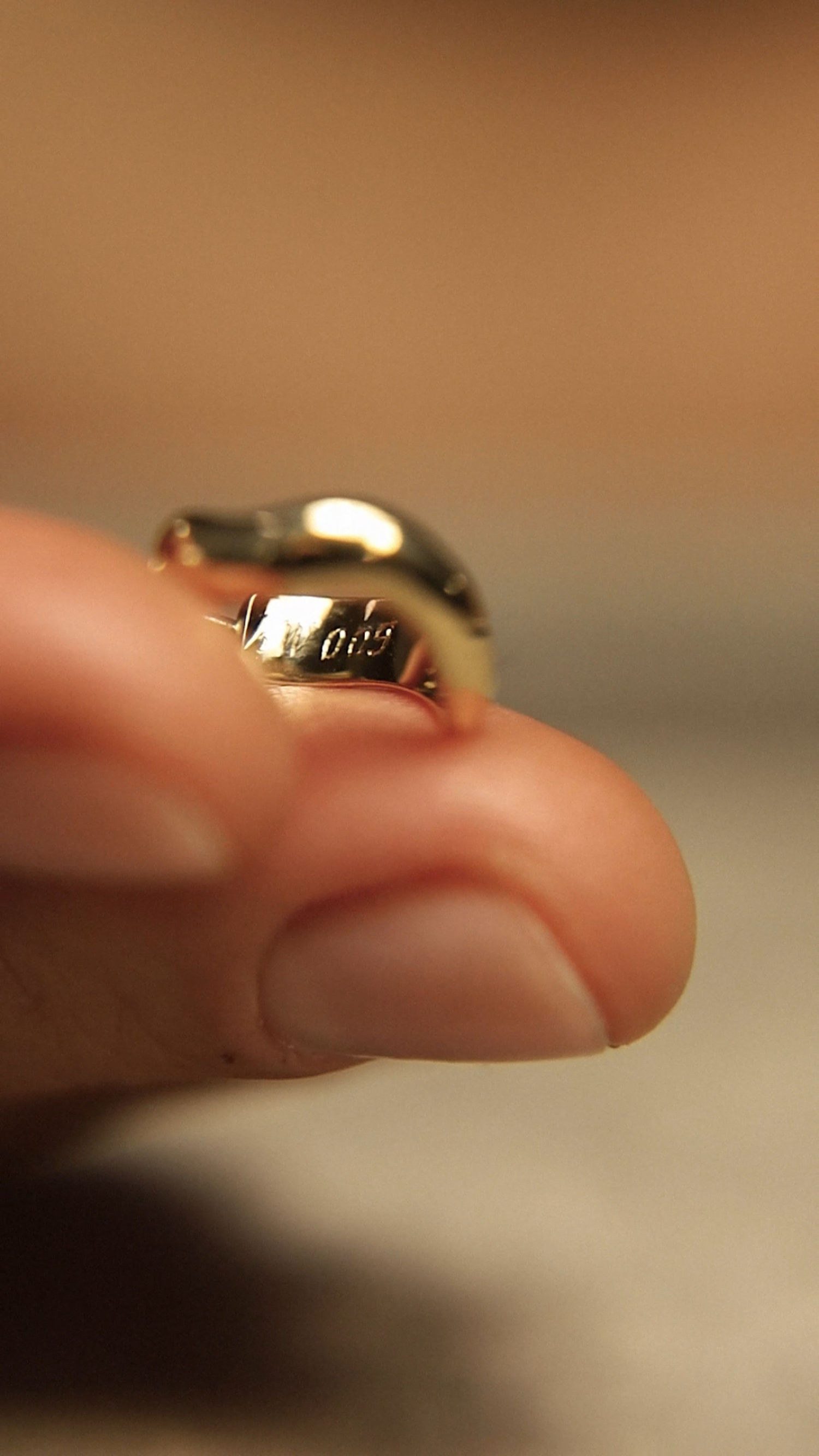 Unikatowe kolczyki, wyrzeźbione ręcznie w jednym egzemplarzu, wyróżniają się subtelnym, ale wyrazistym designem. Wykonane z litego złota próby 585, kolczyki mają pełną konstrukcję w środku, co zapewnia im solidność, nie tracąc przy tym lekkości i elegancji. Ich średnica wynosi około 13 mm, co sprawia, że stanowią subtelną, ale efektowną ozdobę, pokazując styl jej właścicielki.
