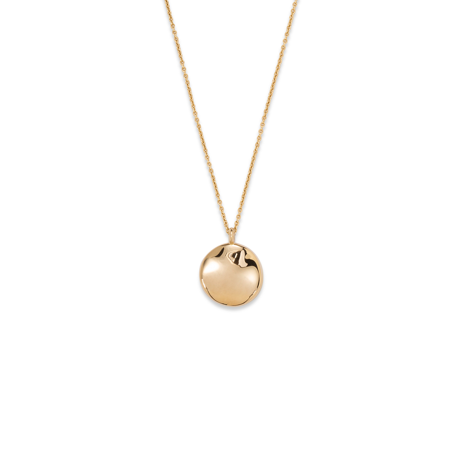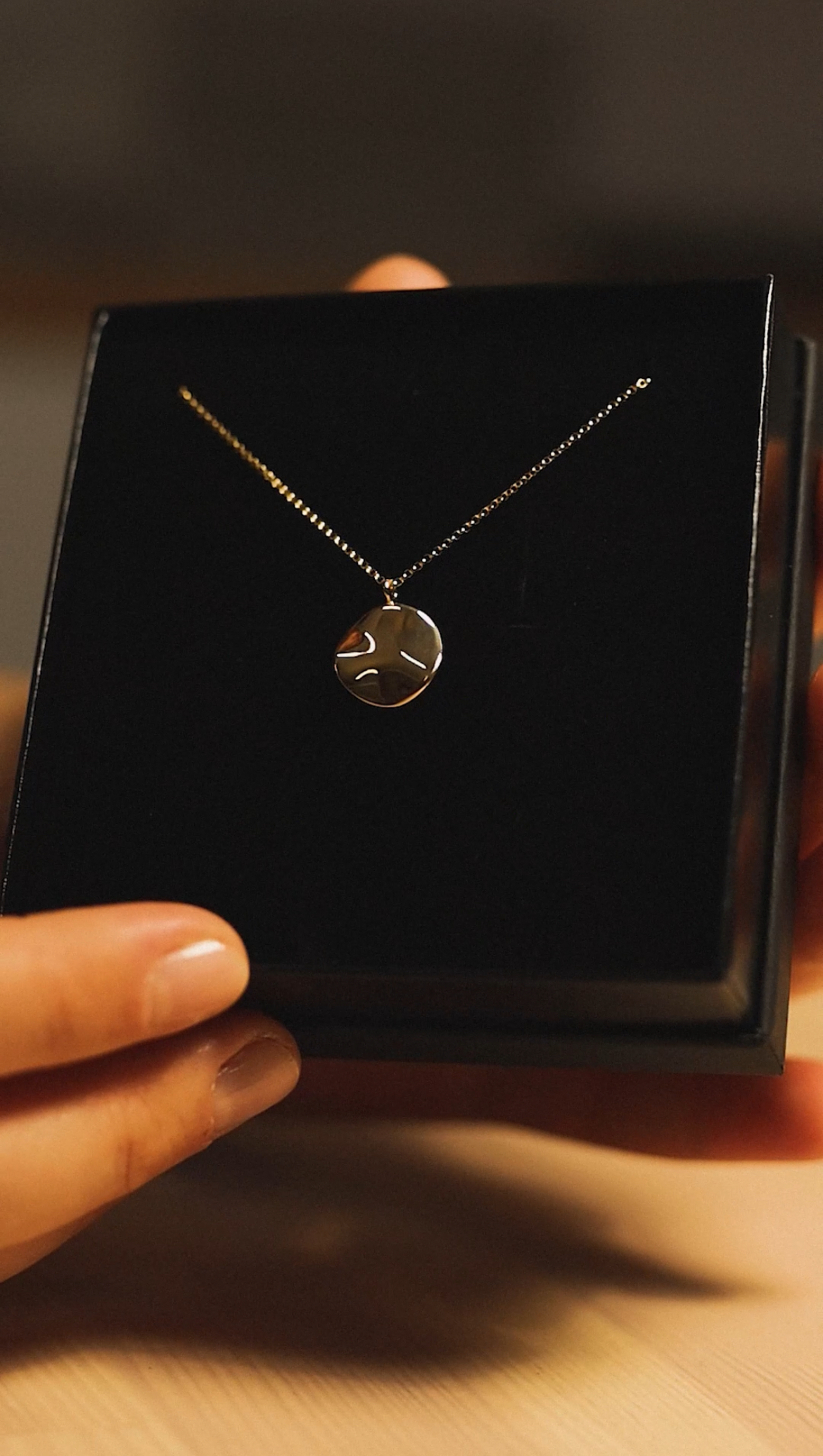 Unikatowy naszyjnik, wyrzeźbiony ręcznie w jednym egzemplarzu, to doskonały przykład elegancji i subtelności. Zawieszka o średnicy 12 mm, wykonana z litego złota próby 585, ma delikatny, okrągły kształt, który w subtelny sposób odbija światło, nadając biżuterii lekkości i wyrafinowanego uroku. Jej pełna konstrukcja gwarantuje solidność, a jednocześnie zachowuje minimalistyczny charakter.